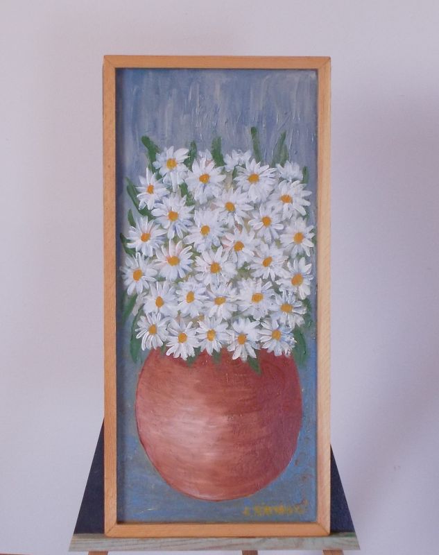 Ručně malovaný obraz Kopretiny v kulaté váze 24x51 cm, akryl
